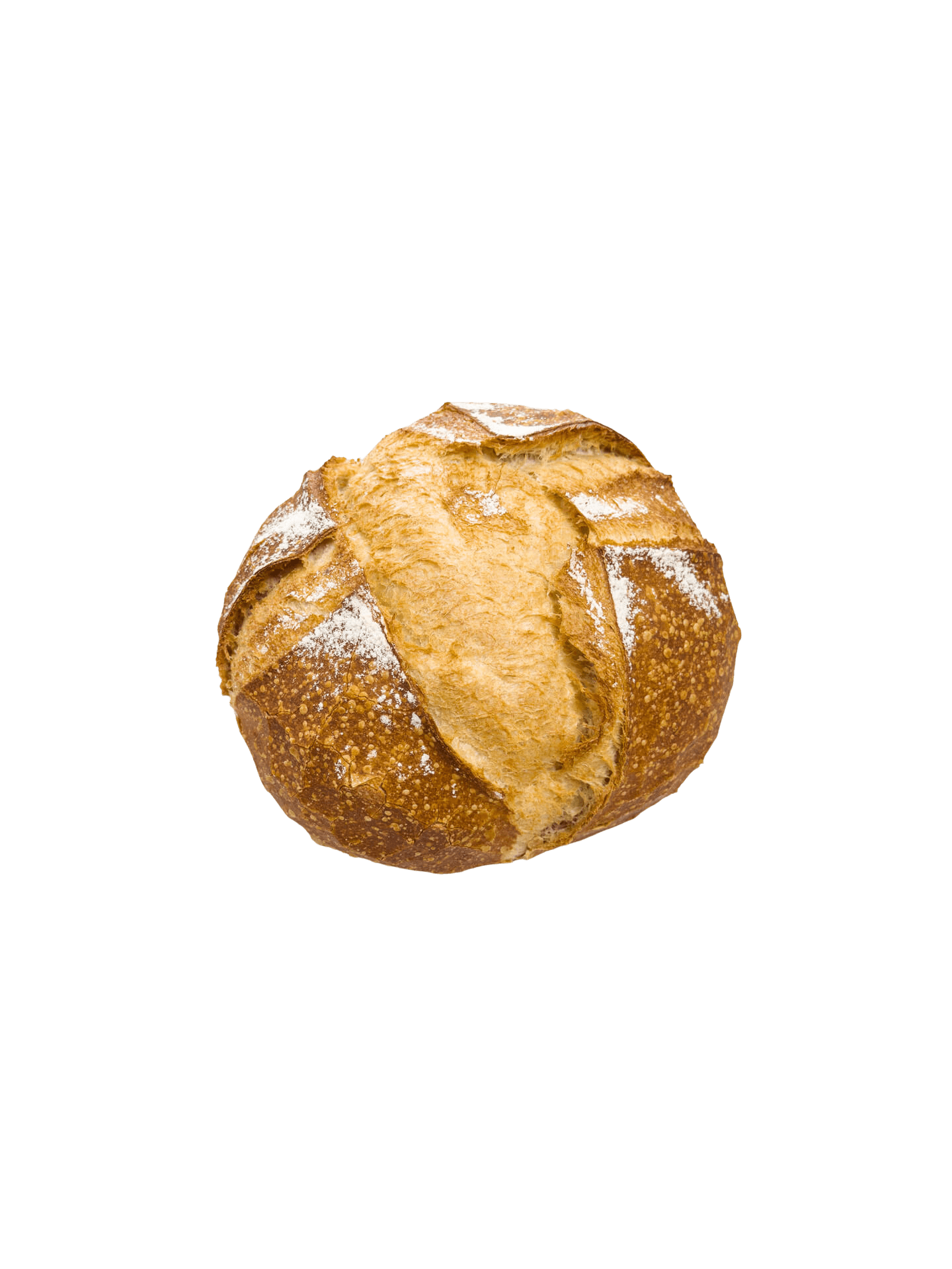 Harina de trigo, harina de centeno, agua, sal, levadura y masa madre.